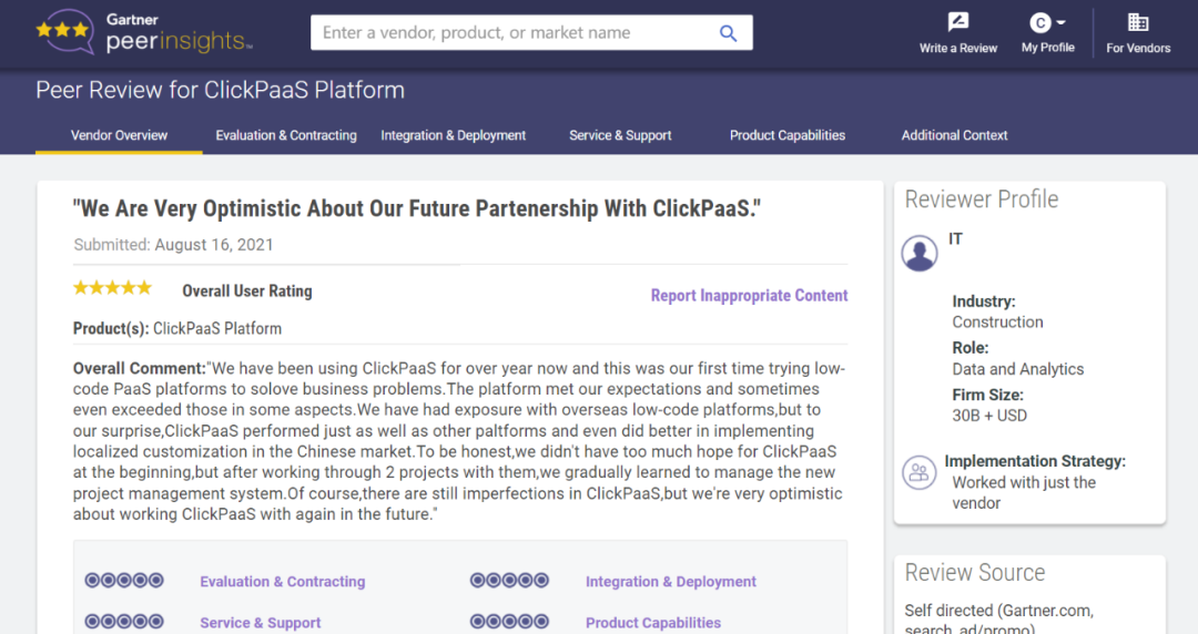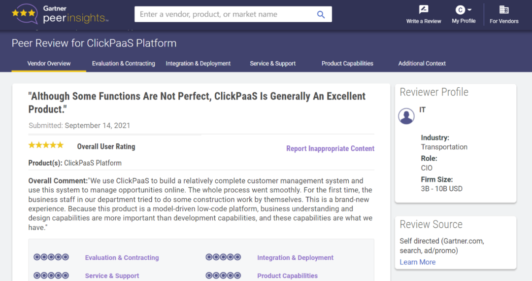 Tips::【Peer Insights】——用户对企业IT产品和服务发布真实评价的平台。。目前已有355个市场,,,255,000条经过验证的评价。。。每一条评价Gartner会针对参评企业营收规模及参评人员信息做验证、、、评价内容做多维核实。。。。